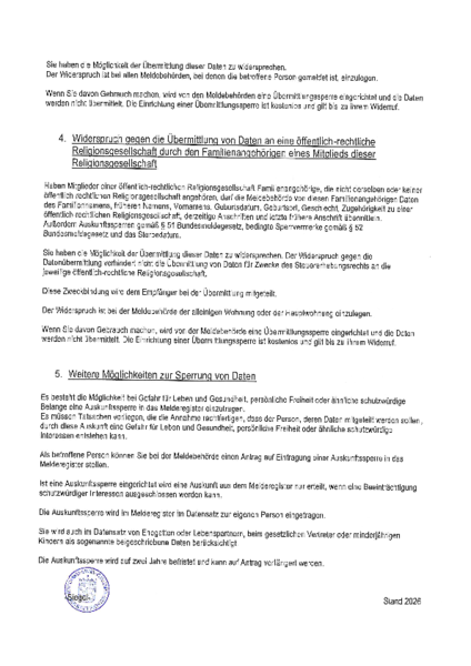 4. Widerspruch gegen die Übermittlung von Daten an eine öffentlich-rechtliche Religionsgesellschaft durch den Familienangehörigen eines Mitglieds dieser Religionsgesellschaft