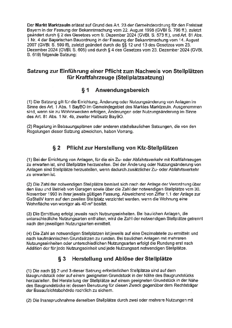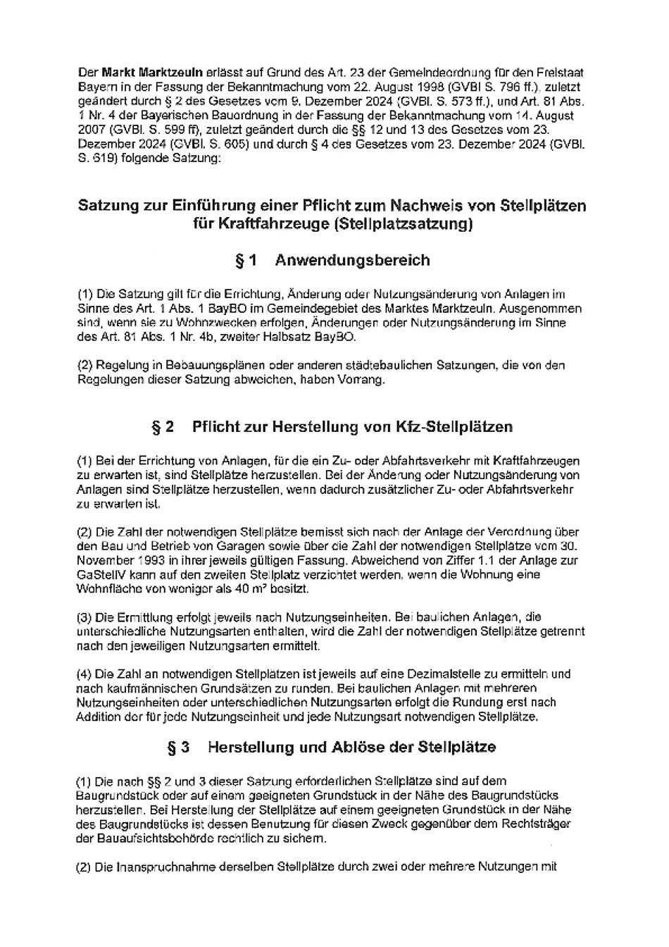 Mit dem 08.10.2025 trat die neue Stellplatzsatzung des Marktes Marktzeuln in Kraft.
