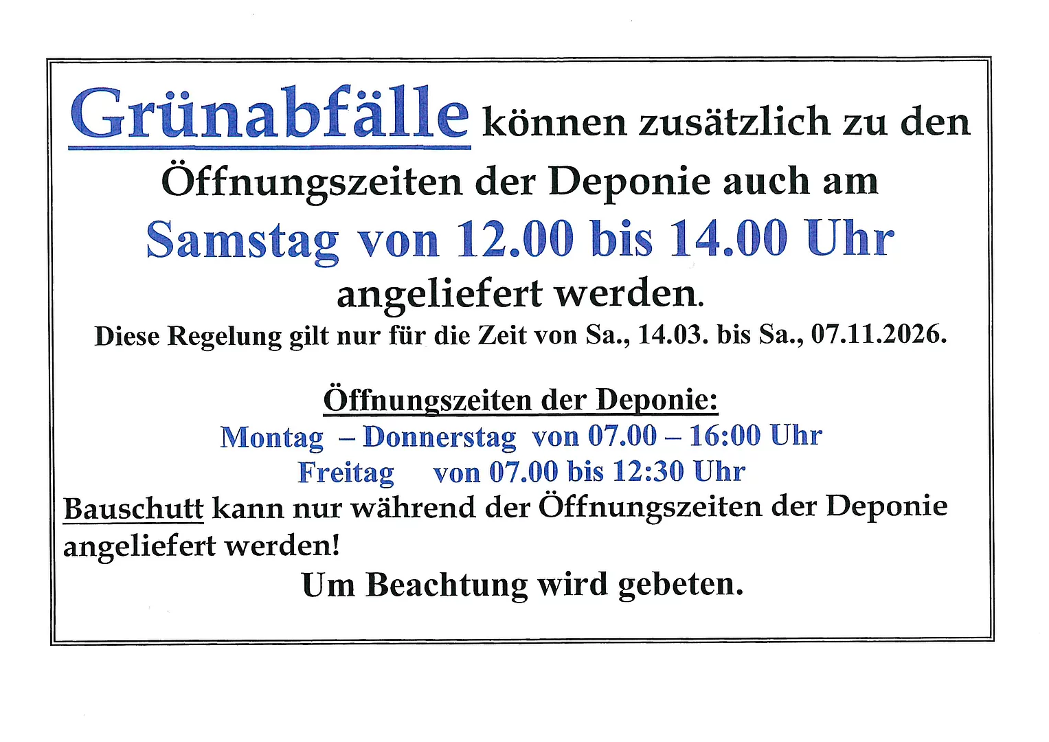 Öffnungszeiten der Deponie: